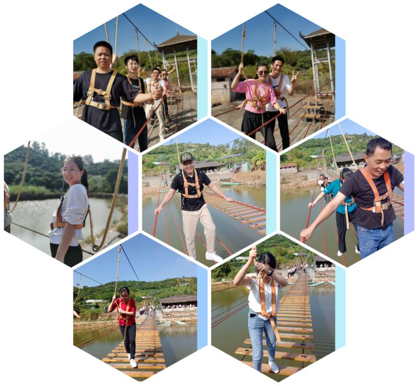 第三个游戏项目:飞夺泸定桥。在紧张刺激的铁索过桥环节,大家克服心理恐惧,挑战自我,苑如一个个六边形战士,通往直前。非凡的体验,让大家认识不一样的你!