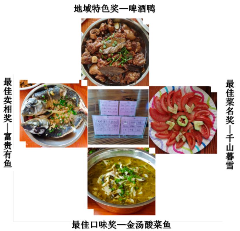 努力付出就一定会有回报,在厨艺大比拼中大家获得了各种奖项:最佳菜名奖、最佳口味奖、地域特色奖、最佳卖相奖。有趣的菜名,精致的摆盘、浓香的味道,每一道佳肴都体现了大家满满的爱。