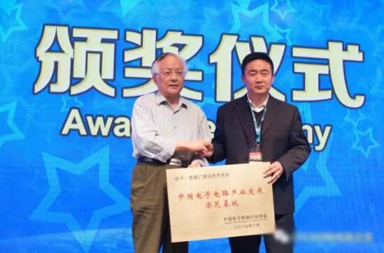 CPCA顾问何为为中国电子电路行业优秀服务园区得住四川遂宁PCB园区颁奖。