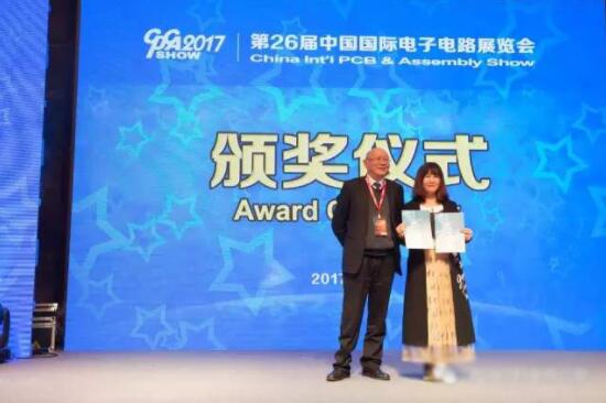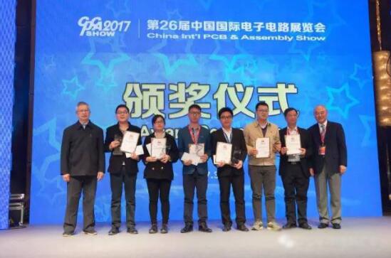 CPCA顾问梁志立为2016年度推动行业科技进步先进企业:深南电路、兴森快捷、崇达电路、天津普林、生益电子颁发奖状。