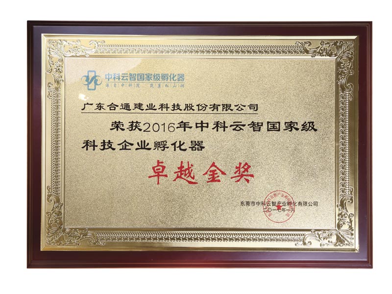2016年中科云智国家级科技企业卓越金奖