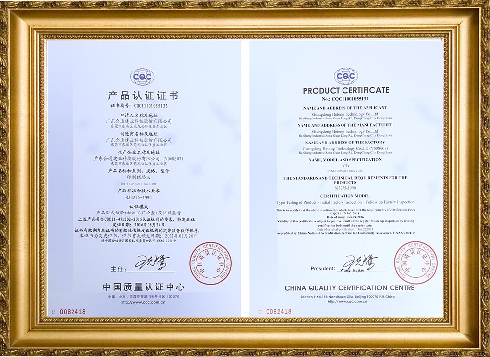CQC产品认证证书