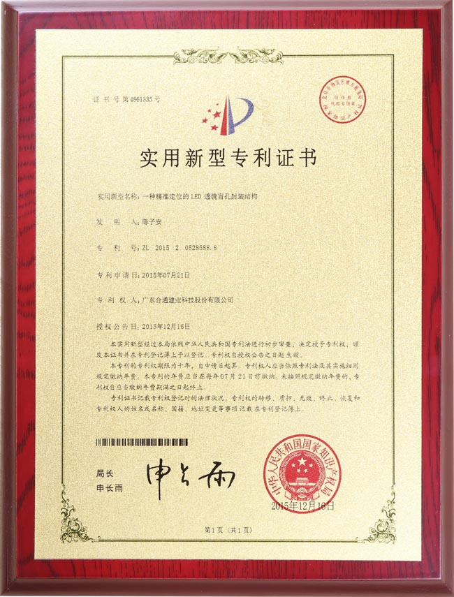 一种准确定位的LED透镜盲孔封装结构