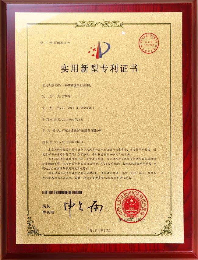 一种高精度单面线路板